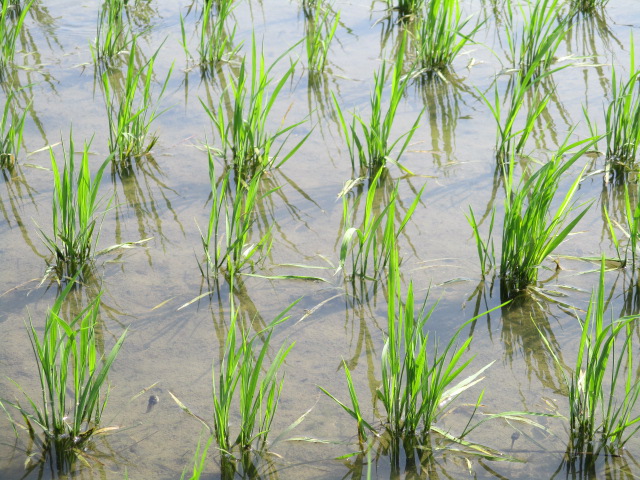 |   | 2017年7月7日 田植え時の倍以上の大きさに茂ってきました。 |