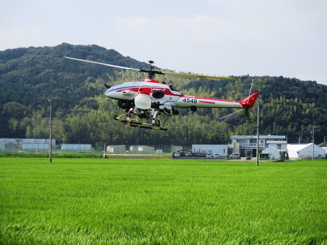 |   | 2017年8月30日 ラジコンヘリによる農薬散布が行われました。 実りの季節にむけて、害虫防除です。 |
