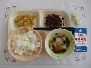 04/11![]() (ごはん、桜ごはんの具) ・牛乳 ・春野菜の白みそ汁 ・照り焼き豆腐ハンバーグ ・花見団子 |