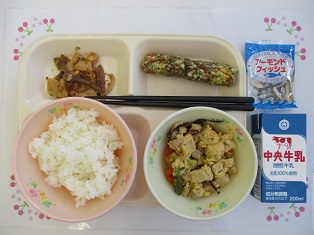 05/23![]() ・牛乳 ・高野豆腐の卵とじ ・ちくわのてん茶揚げ ・たけのこの土佐いため ・アーモンド入り 味付け小魚 |