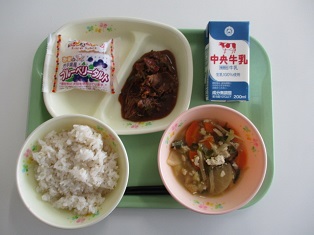06/30![]() ・牛乳 ・ソーセージと野菜のスープ煮 ・野菜たっぷりドライカレー ・フルーツゼリーミックス ・味付け小魚 |
