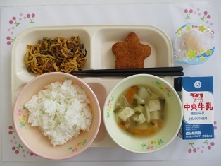 07/06![]() ・牛乳 ・豚肉と野菜のしょうが煮 ・きんぴら包み焼き ・塩昆布和え |