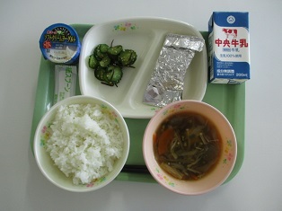 10/07![]() ・牛乳 ・なすのみそ汁 ・レバーとかぼちゃのアーモンド和え ・にんじんしりしり ・ブルーベリーゼリー |