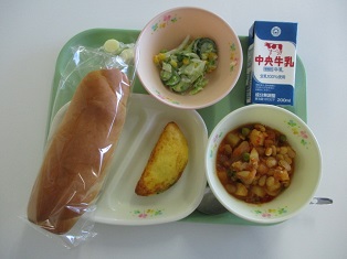 10/20![]() ・牛乳 ・ポークビーンズ ・ほうれん草オムレツ ・コールスローサラダ (コールスロードレッシング) ・キャンディチーズ |