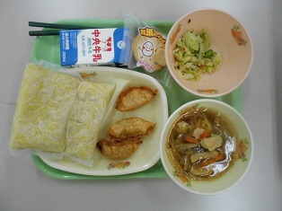 12/02![]() (中華麺 五目ラーメンのつゆ) ・牛乳 ・揚げぎょうざ ・キャベツのカラフル和え ・お米のタルト |