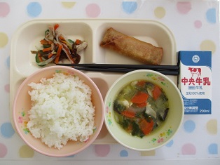 03/06![]() ・牛乳 ・豆腐とチンゲンサイの 中華スープ ・春巻き ・もずくサラダ (香味塩ドレッシング) |