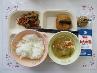 05/19![]() ・牛乳 ・かきたま汁 ・ちくわのてん茶揚げ ・キャベツのカラフル和え ・抹茶大豆 |
