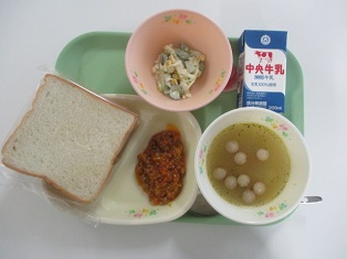 06/13![]() (ごはん、 カレーピラフの具) ・牛乳 ・ソーセージと 野菜のスープ煮 ・ミートボールの ケチャップ煮 |
