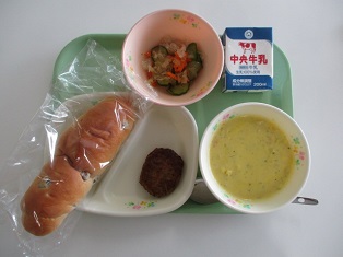 06/22![]() ・牛乳 ・コーンスープ ・ハンバーグ ・寒天サラダ (野菜いっぱいドレッシング) |