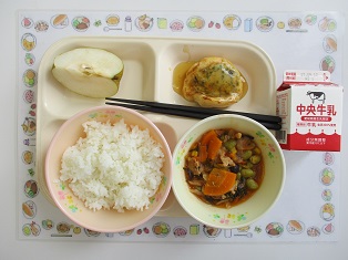 09/05![]() 、五目うどんのつゆ) ・牛乳 ・お好みはんぺん ・なすの豚肉あん ・水まんじゅう |