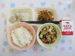 01/18![]() ・牛乳 ・チンゲンサイと豆腐の 中華煮 ・しゅうまい ・茎わかめの中華いため |
