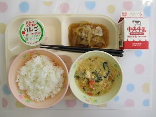 01/29![]() (ごはん、豚丼の具) ・牛乳 ・卵汁 ・りんごヨーグルト |