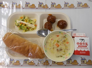 01/18![]() ・牛乳 ・かぶと白菜のクリームシチュー ・ミートボールのケチャップ煮 ・野菜サラダ(マヨネーズ) |