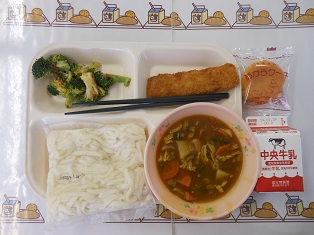 01/24![]() (白玉うどん、 カレー南蛮うどんのつゆ) ・牛乳 ・いかフライ ・ブロッコリーのおかか和え ・おからケーキ |