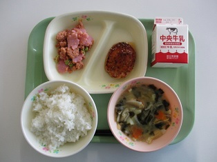 04/18![]() (白玉うどん、 五目肉うどんのつゆ) ・牛乳 ・とり肉の竜田揚げ ・キャベツのゆかり和え |