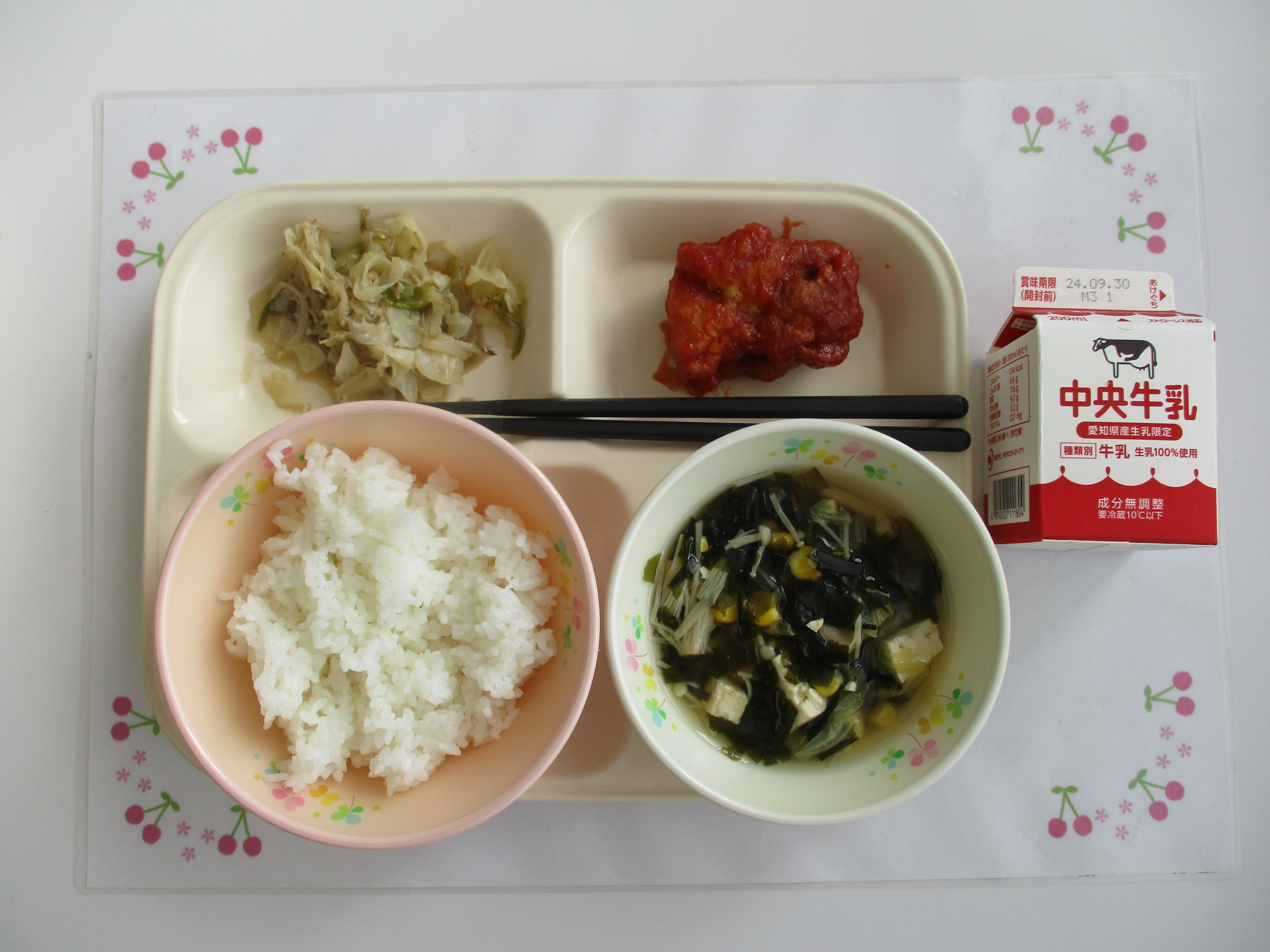 09/24![]() ・牛乳 ・わかめスープ ・ヤンニョムチキン ・キャベツともやしの いため物 |