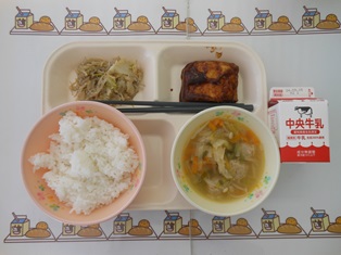 09/12![]() ・牛乳 ・つくねと野菜の さっぱり煮 ・けんちんしのだ のみそかけ ・キャベツともやし のいため物 |