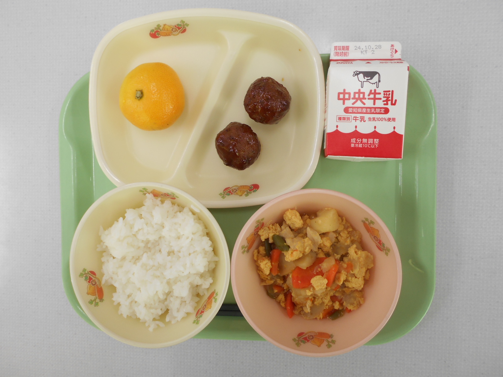 10/22![]() ・牛乳 ・じゃが芋入り親子煮 ・和風肉団子 ・みかん |