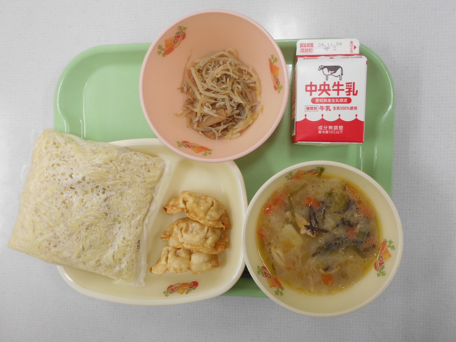 10/29![]() (中華めん、 豚骨ラーメンのスープ) ・牛乳 ・揚げぎょうざ ・もやしとメンマのいため物 |