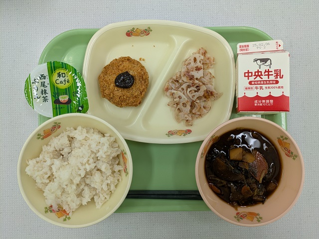 01/31![]() ・牛乳 ・三根五菜みそ汁 ・八丁みそヒレカツ (八丁みそだれ) ・れんこんの梅おかか和え ・抹茶プリン |