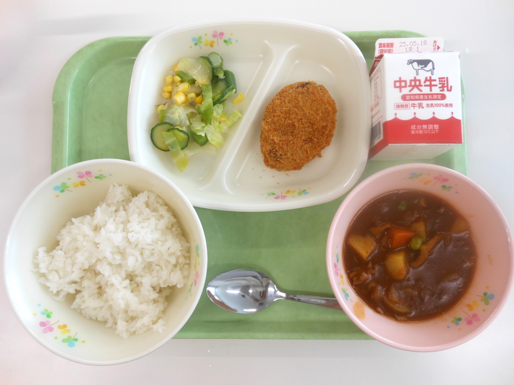 ・ごはん ・牛乳 ・スープカレー ・えびカツレツ ・ハニーレモンサラダ